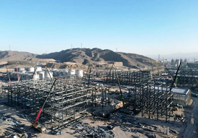 現場施工全面鋪開,正式進入大干快上階段,其中,罐區儲罐已完成80%,反應框架鋼結構拼裝完成80%,濃縮凈化過濾廠房鋼結構完成50%,加氫框架鋼結構拼裝完成80%;管廊已完成80%,管線穿管已完成3500米。
