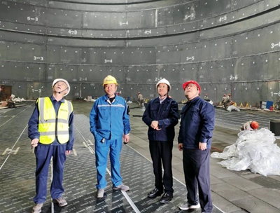 為加快在建工程施工進度,進一步強化質量安全責任,提升質量管理與安全生產水平,奮力沖刺四季度目標任務,近日,北京石油化工工程有限公司黨委書記、董事長許緘濤到公司EPC總承包的延安和靖邊兩個天然氣儲氣調峰及配套LNG項目現場調研督導工作。公司副總經理、安全總監楊礫陪同檢查。